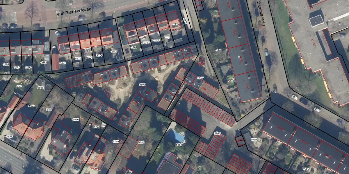 Het perceel waarop Van Riebeeckweg 46-A staat heeft een oppervlakte van 2257 m². Dit is een zeer groot perceel. De perceeloppervlakte wordt geregistreerd door het Kadaster. Gedetailleerde informatie over de maten van dit perceel kunt u vinden in het rapport Kadastrale kaart met maatvoering van Van Riebeeckweg 46-A.