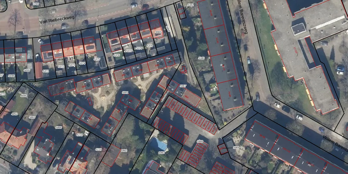 Van Riebeeckweg 48 is gelegen op kadastraal perceel HVS00C5967. Deze kadastrale aanduiding is uniek en wordt gebruikt door het Kadaster om eigendomsrechten en andere zakelijke rechten vast te leggen. Het perceel maakt onderdeel uit van de kadastrale gemeente Hilversum.