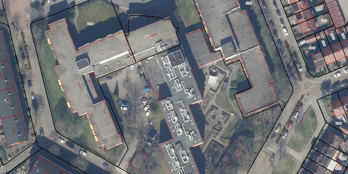 Het perceel waarop Van Riebeeckweg 50-k022 staat heeft een oppervlakte van 7843 m². Dit is een zeer groot perceel. De perceeloppervlakte wordt geregistreerd door het Kadaster. Gedetailleerde informatie over de maten van dit perceel kunt u vinden in het rapport Kadastrale kaart met maatvoering van Van Riebeeckweg 50-k022.