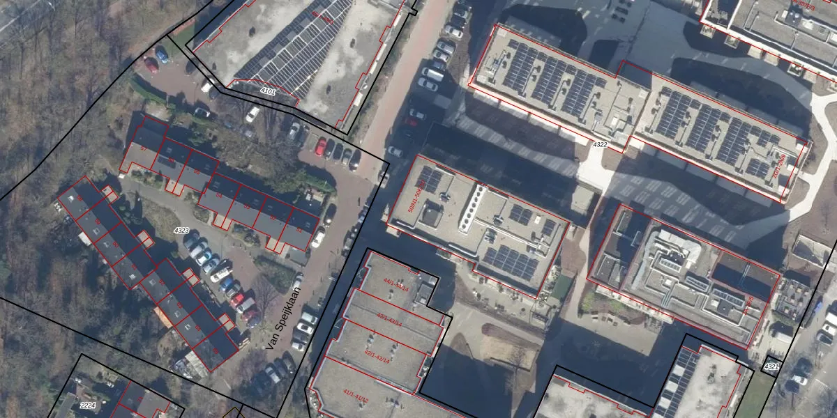 Van Speijklaan 50-E-4 is gelegen op kadastraal perceel HVS00M4322. Deze kadastrale aanduiding is uniek en wordt gebruikt door het Kadaster om eigendomsrechten en andere zakelijke rechten vast te leggen. Het perceel maakt onderdeel uit van de kadastrale gemeente Hilversum.