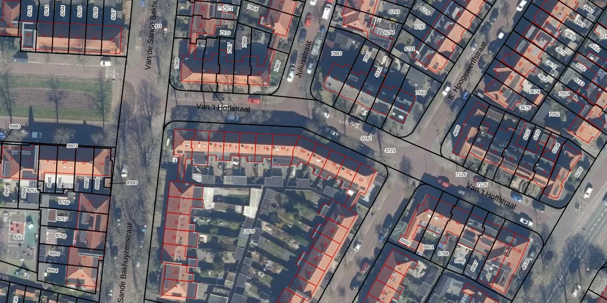 Het perceel waarop Van 't Hoffstraat 16 staat heeft een oppervlakte van 4115 m². Dit is een zeer groot perceel. De perceeloppervlakte wordt geregistreerd door het Kadaster. Gedetailleerde informatie over de maten van dit perceel kunt u vinden in het rapport Kadastrale kaart met maatvoering van Van 't Hoffstraat 16.