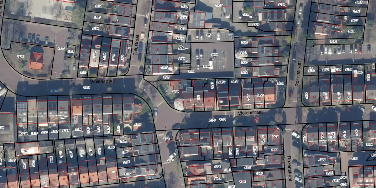 Het perceel waarop Violenstraat 51 staat heeft een oppervlakte van 255 m². Dit is een middelgroot perceel. De perceeloppervlakte wordt geregistreerd door het Kadaster. Gedetailleerde informatie over de maten van dit perceel kunt u vinden in het rapport Kadastrale kaart met maatvoering van Violenstraat 51.
