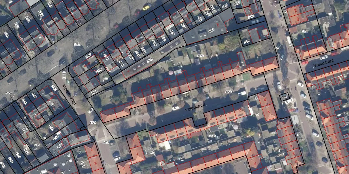 Het perceel waarop Voltastraat 15 staat heeft een oppervlakte van 2303 m². Dit is een zeer groot perceel. De perceeloppervlakte wordt geregistreerd door het Kadaster. Gedetailleerde informatie over de maten van dit perceel kunt u vinden in het rapport Kadastrale kaart met maatvoering van Voltastraat 15.