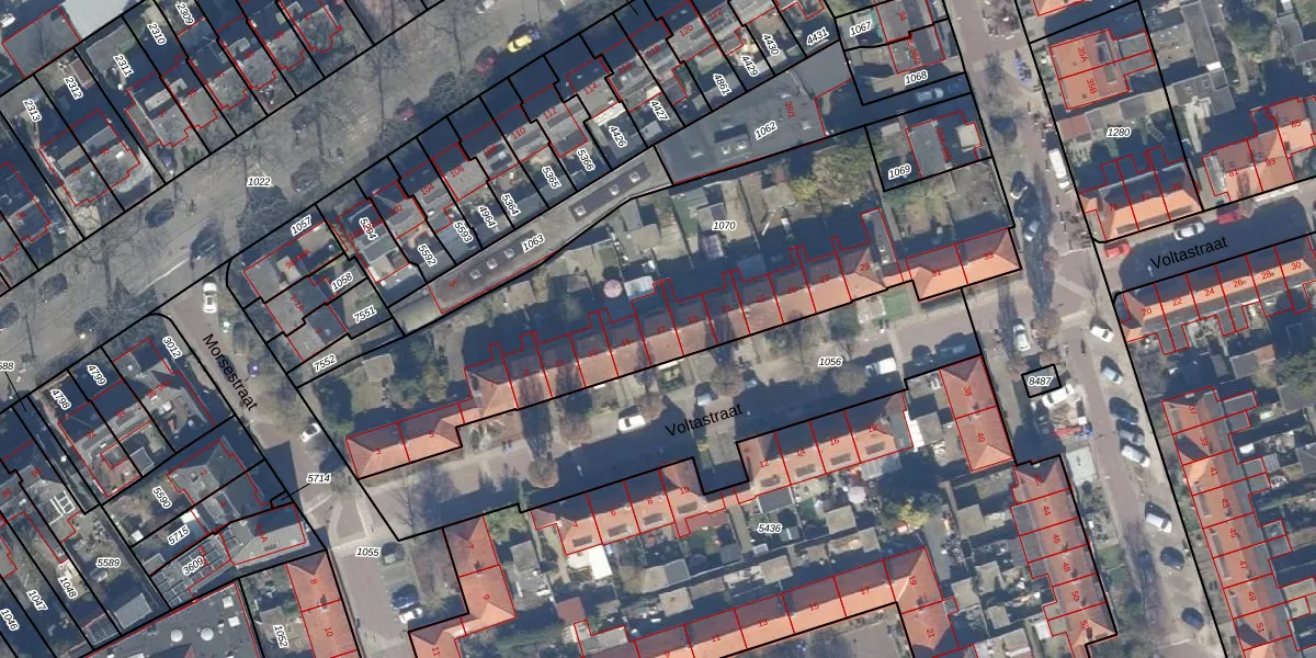 Het perceel waarop Voltastraat 17 staat heeft een oppervlakte van 2303 m². Dit is een zeer groot perceel. De perceeloppervlakte wordt geregistreerd door het Kadaster. Gedetailleerde informatie over de maten van dit perceel kunt u vinden in het rapport Kadastrale kaart met maatvoering van Voltastraat 17.