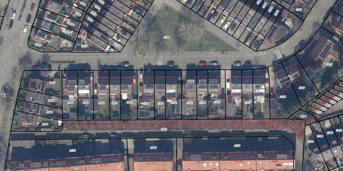 Het perceel waarop Vosmaerlaan 57 staat heeft een oppervlakte van 267 m². Dit is een middelgroot perceel. De perceeloppervlakte wordt geregistreerd door het Kadaster. Gedetailleerde informatie over de maten van dit perceel kunt u vinden in het rapport Kadastrale kaart met maatvoering van Vosmaerlaan 57.