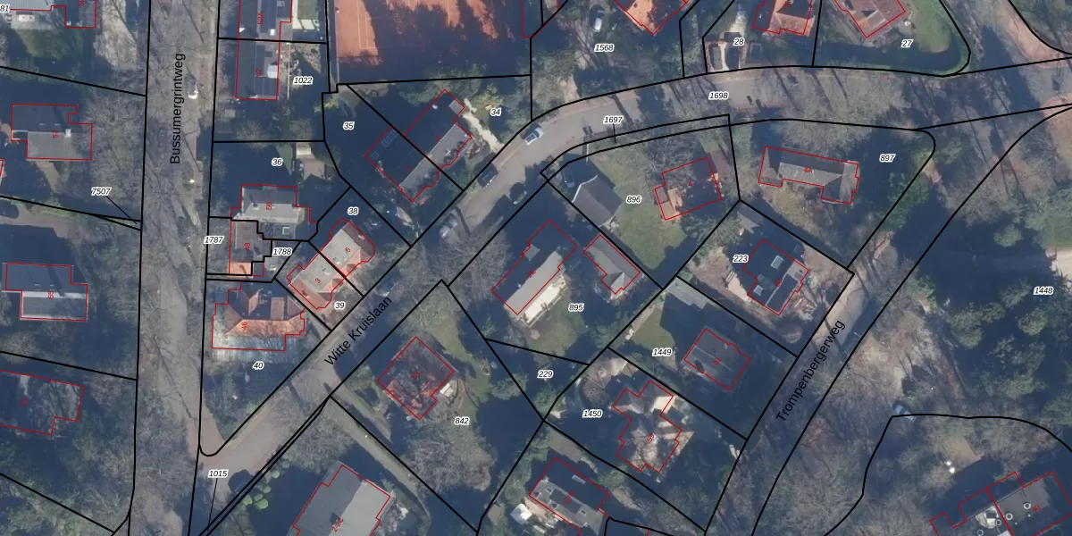 Witte Kruislaan 2-E is gelegen op kadastraal perceel HVS00Q895. Deze kadastrale aanduiding is uniek en wordt gebruikt door het Kadaster om eigendomsrechten en andere zakelijke rechten vast te leggen. Het perceel maakt onderdeel uit van de kadastrale gemeente Hilversum.