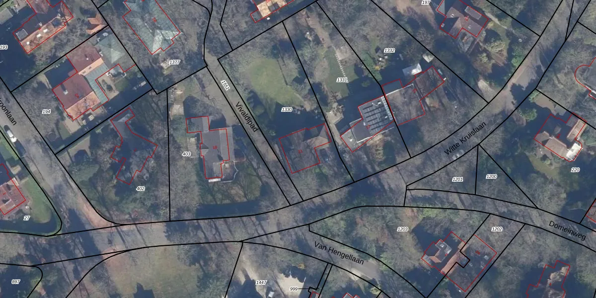 Het perceel waarop Witte Kruislaan 21 staat heeft een oppervlakte van 1242 m². Dit is een zeer groot perceel. De perceeloppervlakte wordt geregistreerd door het Kadaster. Gedetailleerde informatie over de maten van dit perceel kunt u vinden in het rapport Kadastrale kaart met maatvoering van Witte Kruislaan 21.