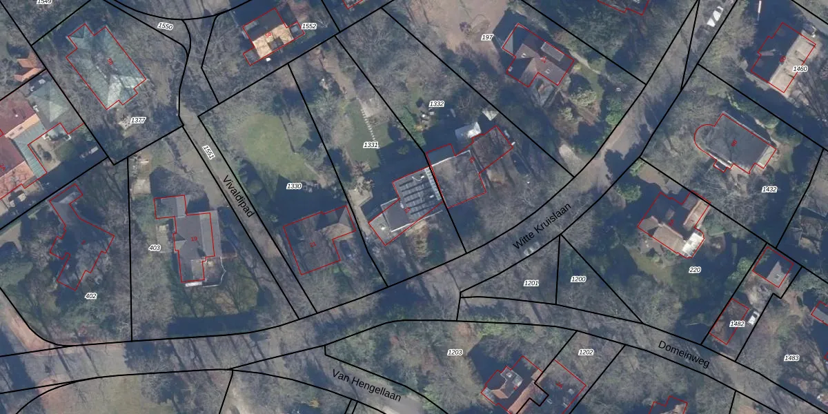 Het perceel waarop Witte Kruislaan 23 staat heeft een oppervlakte van 1150 m². Dit is een zeer groot perceel. De perceeloppervlakte wordt geregistreerd door het Kadaster. Gedetailleerde informatie over de maten van dit perceel kunt u vinden in het rapport Kadastrale kaart met maatvoering van Witte Kruislaan 23.