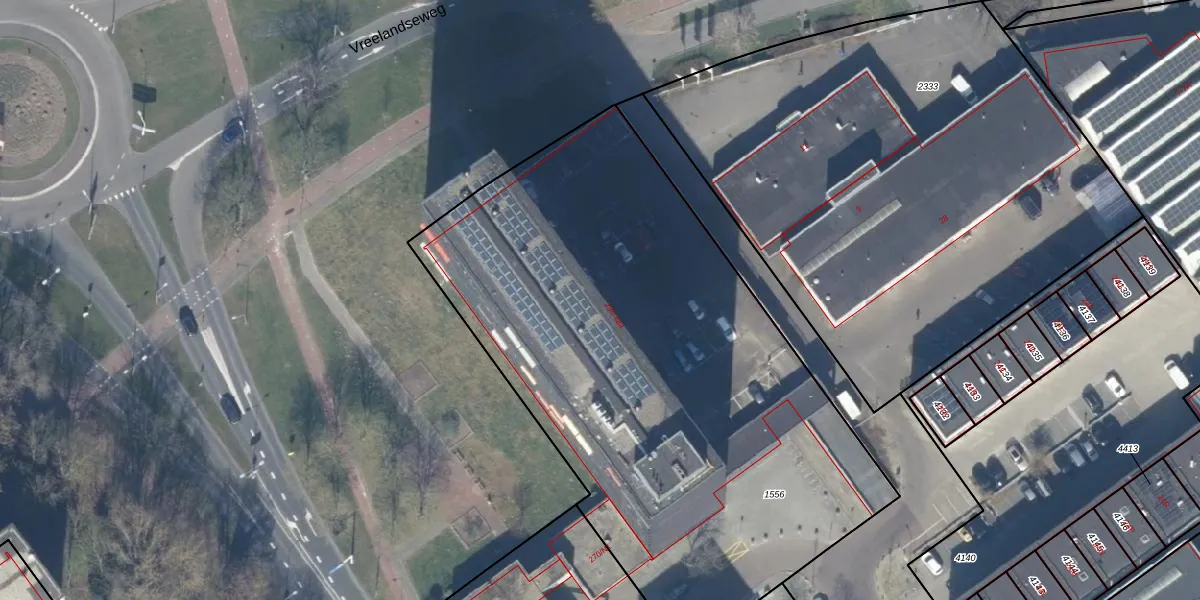 Het perceel waarop het adres ligt is HVS00-H-1556. De afkorting 'HVS00' staat voor kadastrale gemeente Hilversum. De oppervlakte van het perceel is 3488 m². Dat is groter dan gemiddeld in Hilversum, waar de gemiddelde perceeloppervlakte op 1394,51 m² ligt. De grootste perceeloppervlakte in de kadastrale gemeente is 91,7 ha. De kleinste oppervlakte bedraagt 0 m². Op het perceel zijn 96 adressen aanwezig. In de Basisregistratie Kadaster (BRK) werden de grenzen van het perceel geregistreerd op 12-11-2009.
