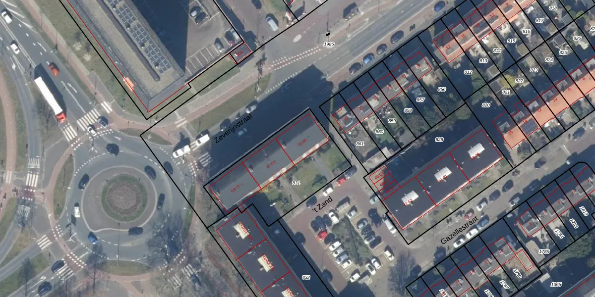 Het perceel waarop Zeverijnstraat 39 staat heeft een oppervlakte van 945 m². Dit is een groot perceel. De perceeloppervlakte wordt geregistreerd door het Kadaster. Gedetailleerde informatie over de maten van dit perceel kunt u vinden in het rapport Kadastrale kaart met maatvoering van Zeverijnstraat 39.