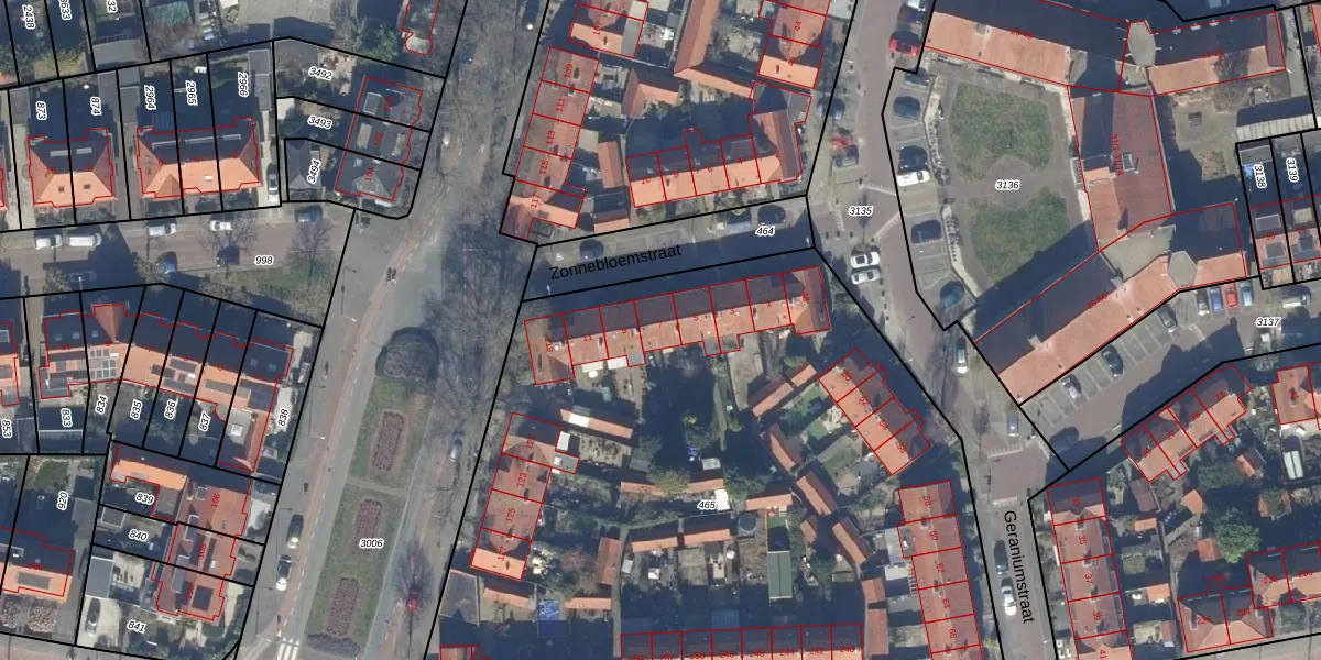 Het perceel waarop Zonnebloemstraat 7 staat heeft een oppervlakte van 4770 m². Dit is een zeer groot perceel. De perceeloppervlakte wordt geregistreerd door het Kadaster. Gedetailleerde informatie over de maten van dit perceel kunt u vinden in het rapport Kadastrale kaart met maatvoering van Zonnebloemstraat 7.