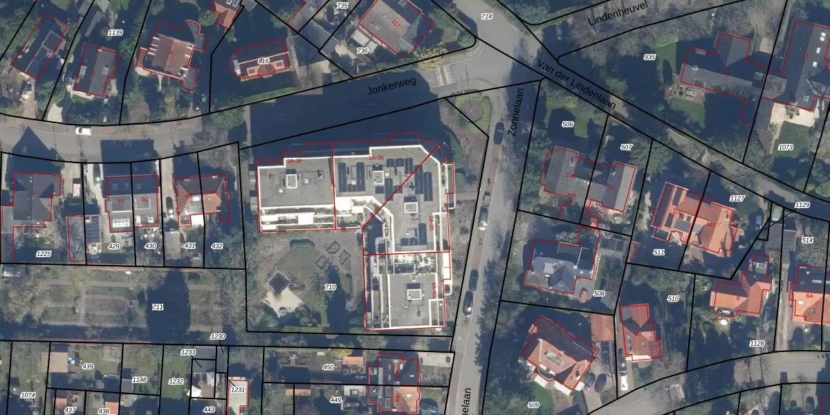 Zonnelaan 2-F is gelegen op kadastraal perceel HVS00P710. Deze kadastrale aanduiding is uniek en wordt gebruikt door het Kadaster om eigendomsrechten en andere zakelijke rechten vast te leggen. Het perceel maakt onderdeel uit van de kadastrale gemeente Hilversum.