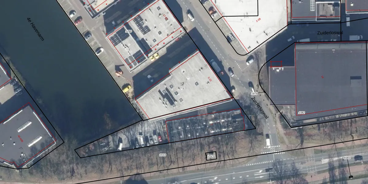 Het perceel waarop Zuiderloswal 15 staat heeft een oppervlakte van 4792 m². Dit is een zeer groot perceel. De perceeloppervlakte wordt geregistreerd door het Kadaster. Gedetailleerde informatie over de maten van dit perceel kunt u vinden in het rapport Kadastrale kaart met maatvoering van Zuiderloswal 15.