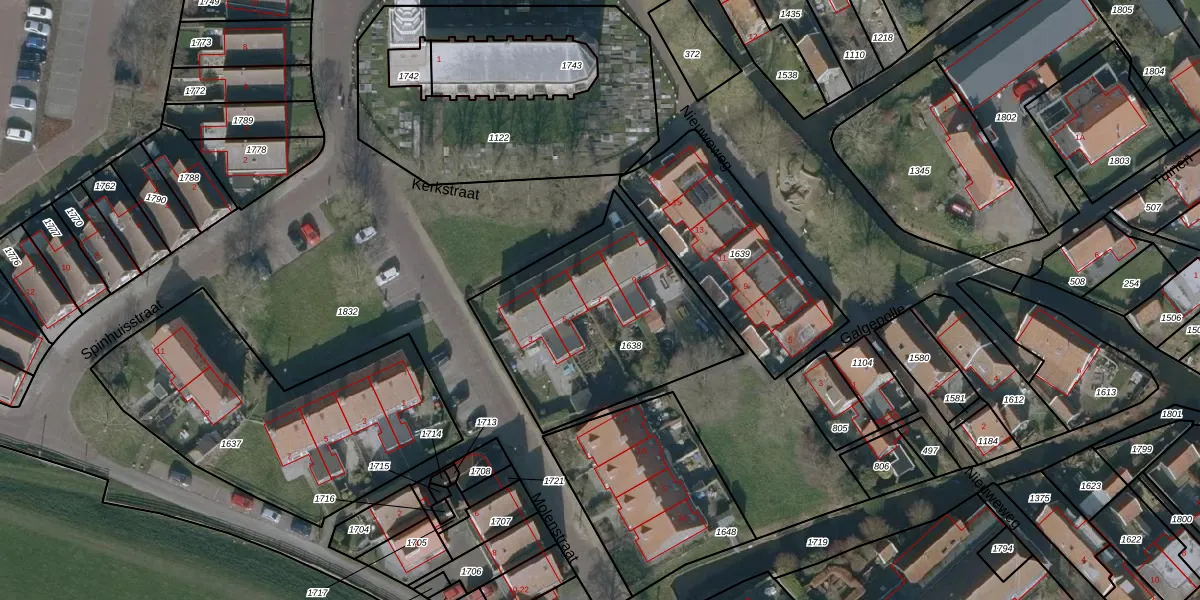 Het perceel waarop Kerkstraat 7 staat heeft een oppervlakte van 933 m². Dit is een groot perceel. De perceeloppervlakte wordt geregistreerd door het Kadaster. Gedetailleerde informatie over de maten van dit perceel kunt u vinden in het rapport Kadastrale kaart met maatvoering van Kerkstraat 7.