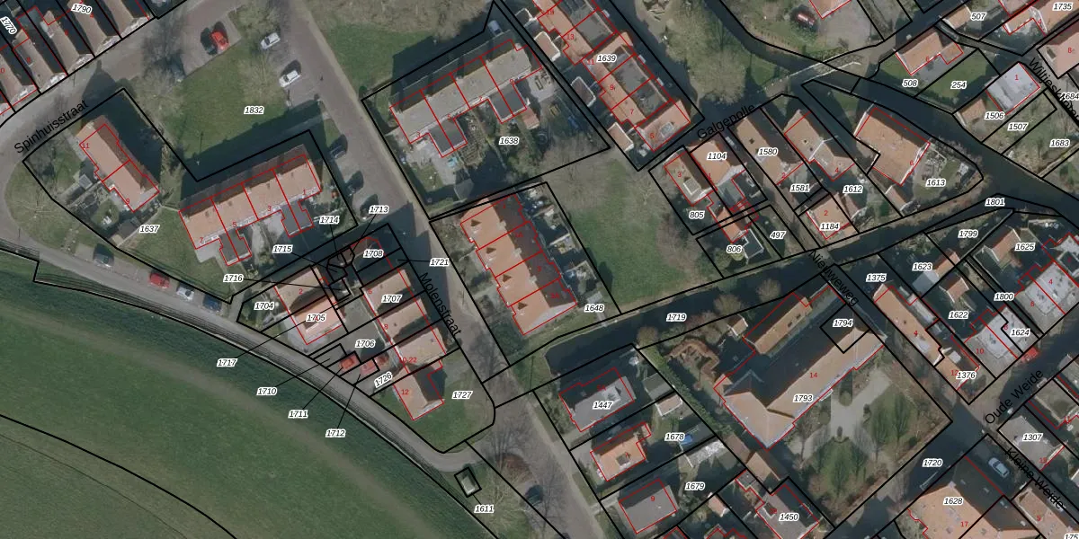 Het perceel waarop Molenstraat 3 staat heeft een oppervlakte van 685 m². Dit is een groot perceel. De perceeloppervlakte wordt geregistreerd door het Kadaster. Gedetailleerde informatie over de maten van dit perceel kunt u vinden in het rapport Kadastrale kaart met maatvoering van Molenstraat 3.