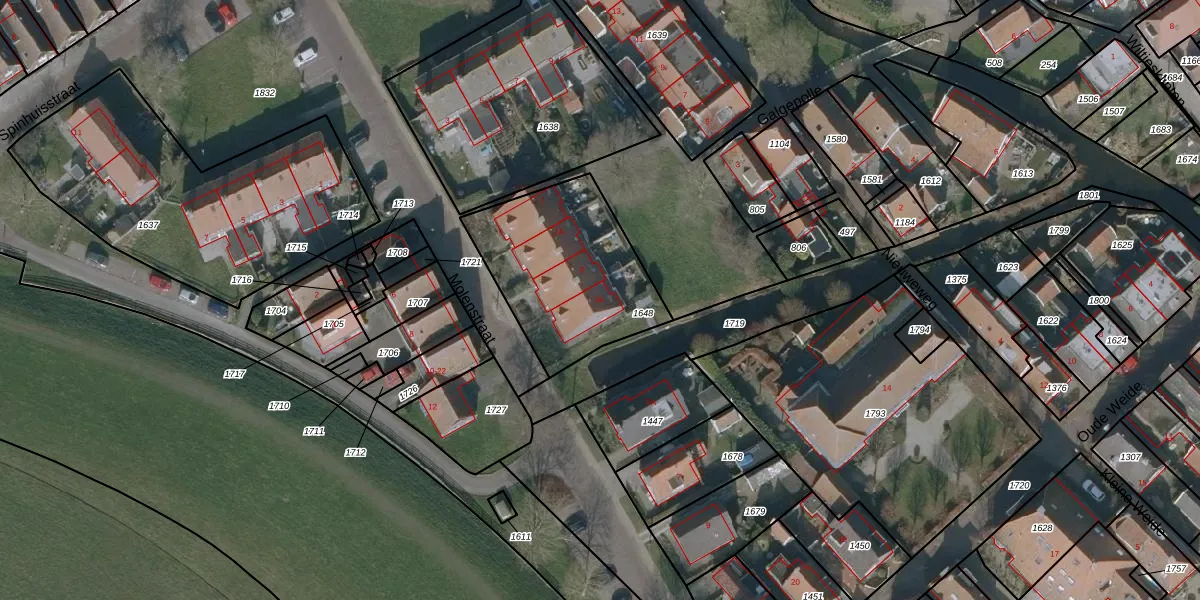 Het perceel waarop Molenstraat 3-A staat heeft een oppervlakte van 685 m². Dit is een groot perceel. De perceeloppervlakte wordt geregistreerd door het Kadaster. Gedetailleerde informatie over de maten van dit perceel kunt u vinden in het rapport Kadastrale kaart met maatvoering van Molenstraat 3-A.