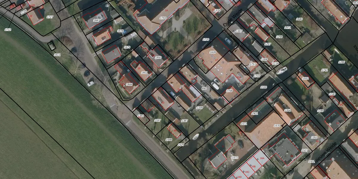 Het perceel waarop Oude Weide 21 staat heeft een oppervlakte van 407 m². Dit is een groot perceel. De perceeloppervlakte wordt geregistreerd door het Kadaster. Gedetailleerde informatie over de maten van dit perceel kunt u vinden in het rapport Kadastrale kaart met maatvoering van Oude Weide 21.