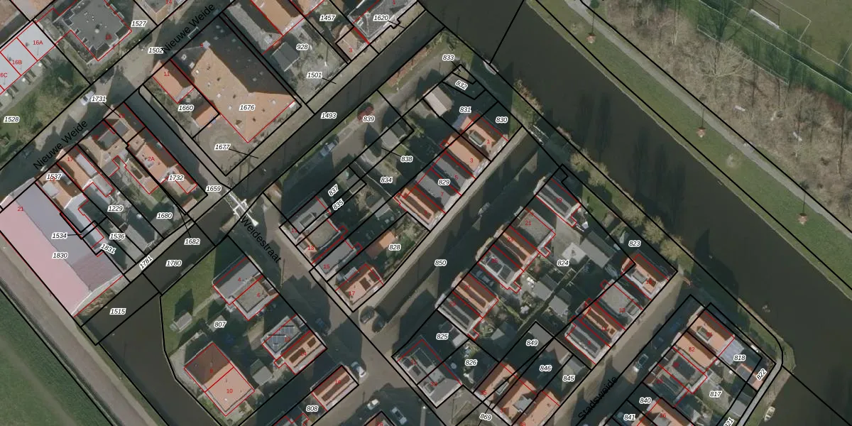 Het perceel waarop Weidestraat 9 staat heeft een oppervlakte van 355 m². Dit is een groot perceel. De perceeloppervlakte wordt geregistreerd door het Kadaster. Gedetailleerde informatie over de maten van dit perceel kunt u vinden in het rapport Kadastrale kaart met maatvoering van Weidestraat 9.