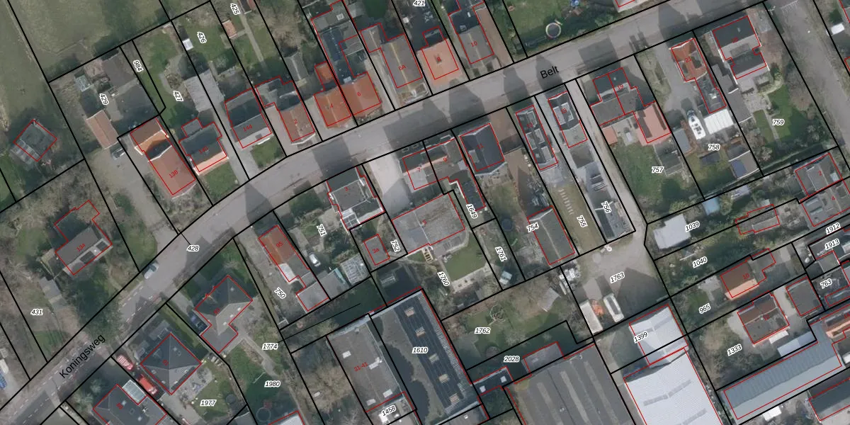 Het perceel waarop Belt 5 staat heeft een oppervlakte van 740 m². Dit is een groot perceel. De perceeloppervlakte wordt geregistreerd door het Kadaster. Gedetailleerde informatie over de maten van dit perceel kunt u vinden in het rapport Kadastrale kaart met maatvoering van Belt 5.