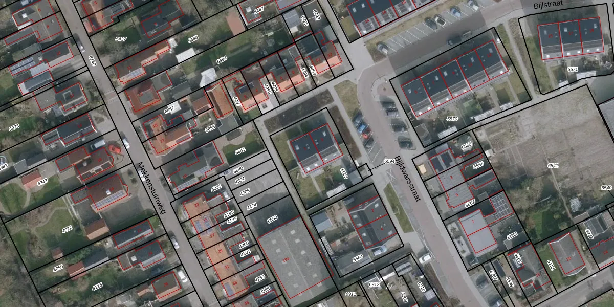Het perceel waarop Bijlstraat 1 staat heeft een oppervlakte van 550 m². Dit is een groot perceel. De perceeloppervlakte wordt geregistreerd door het Kadaster. Gedetailleerde informatie over de maten van dit perceel kunt u vinden in het rapport Kadastrale kaart met maatvoering van Bijlstraat 1.