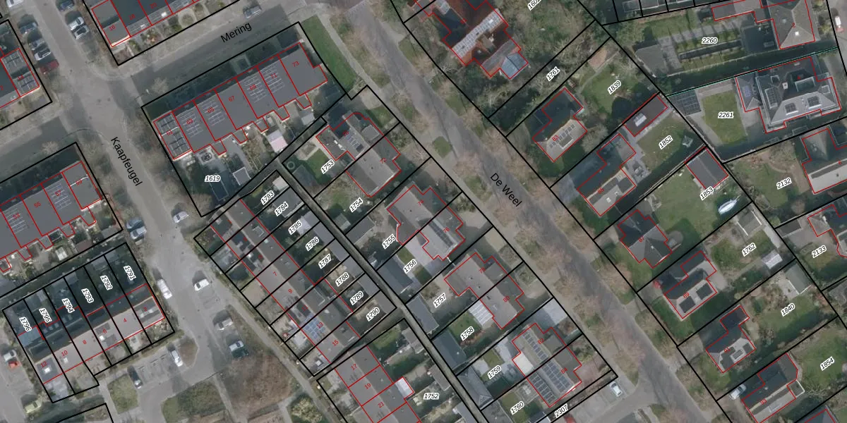 Het perceel waarop De Weel 74 staat heeft een oppervlakte van 310 m². Dit is een groot perceel. De perceeloppervlakte wordt geregistreerd door het Kadaster. Gedetailleerde informatie over de maten van dit perceel kunt u vinden in het rapport Kadastrale kaart met maatvoering van De Weel 74.