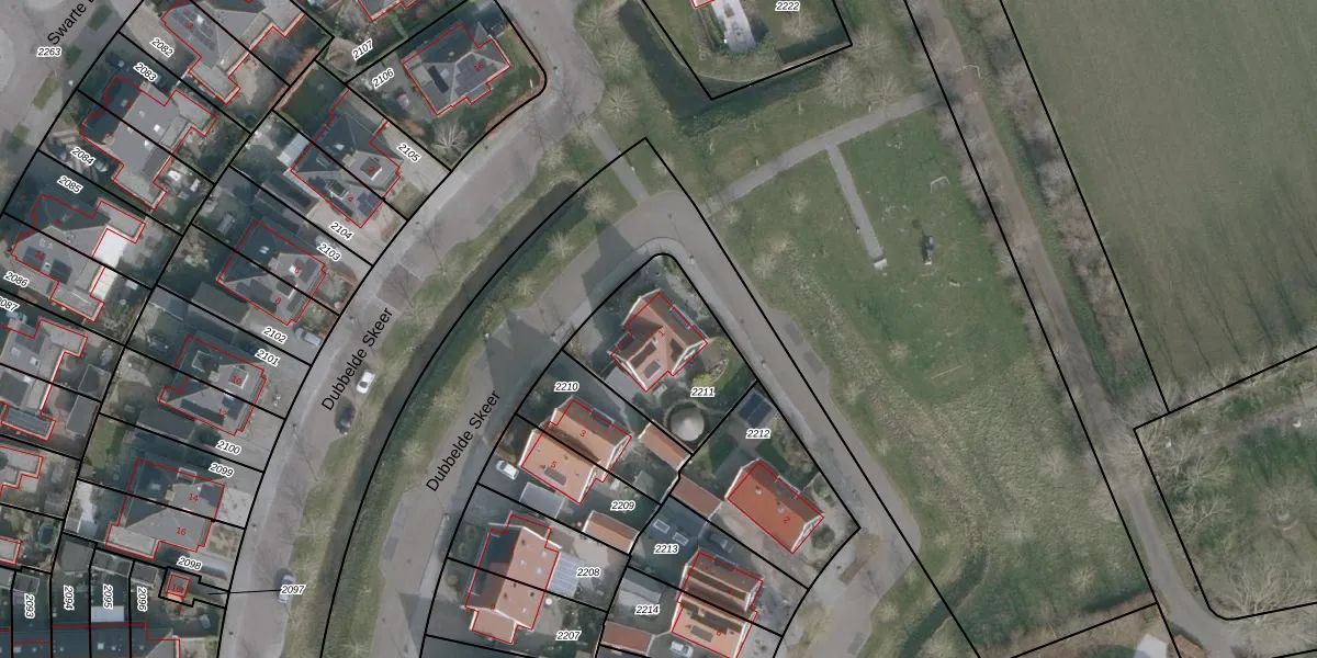 Het perceel waarop Dubbelde Skeer 1 staat heeft een oppervlakte van 472 m². Dit is een groot perceel. De perceeloppervlakte wordt geregistreerd door het Kadaster. Gedetailleerde informatie over de maten van dit perceel kunt u vinden in het rapport Kadastrale kaart met maatvoering van Dubbelde Skeer 1.