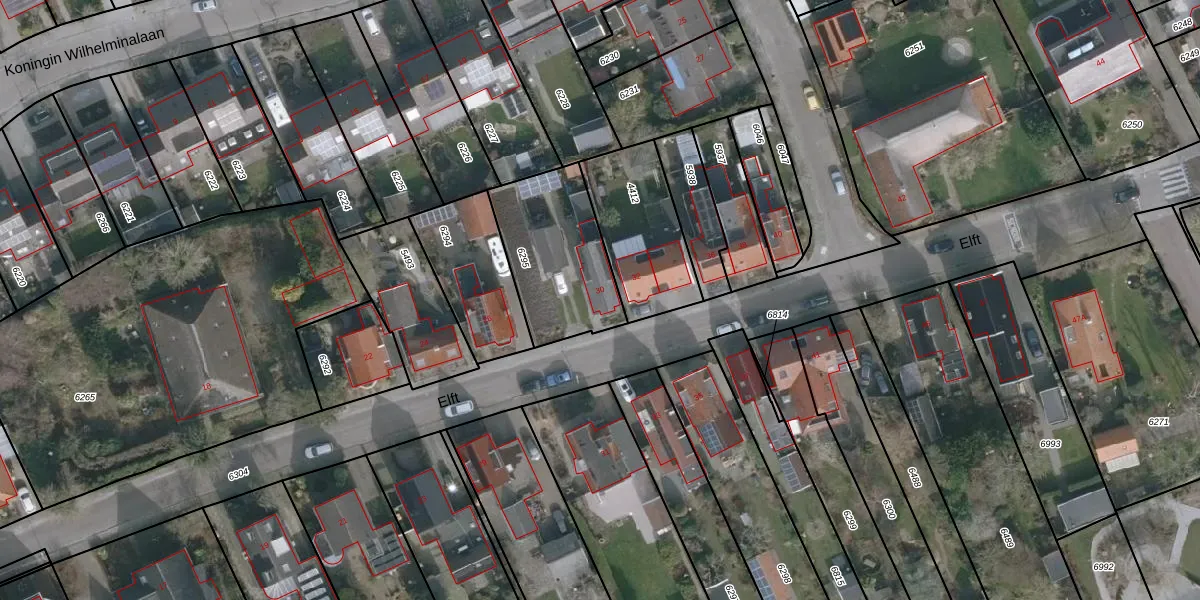 Het perceel waarop Elft 30 staat heeft een oppervlakte van 444 m². Dit is een groot perceel. De perceeloppervlakte wordt geregistreerd door het Kadaster. Gedetailleerde informatie over de maten van dit perceel kunt u vinden in het rapport Kadastrale kaart met maatvoering van Elft 30.
