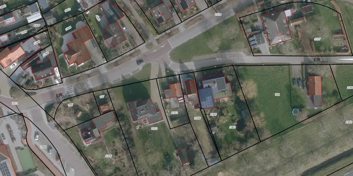 Het perceel waarop Elft 57 staat heeft een oppervlakte van 372 m². Dit is een groot perceel. De perceeloppervlakte wordt geregistreerd door het Kadaster. Gedetailleerde informatie over de maten van dit perceel kunt u vinden in het rapport Kadastrale kaart met maatvoering van Elft 57.