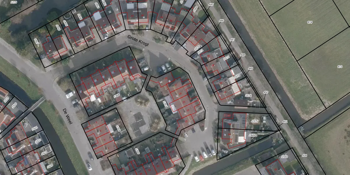 Het perceel waarop Grote Krogt 17 staat heeft een oppervlakte van 771 m². Dit is een groot perceel. De perceeloppervlakte wordt geregistreerd door het Kadaster. Gedetailleerde informatie over de maten van dit perceel kunt u vinden in het rapport Kadastrale kaart met maatvoering van Grote Krogt 17.
