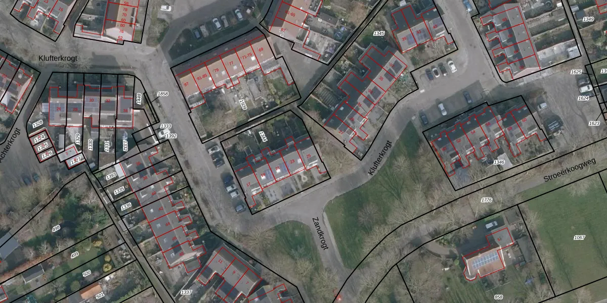 Het perceel waarop Klufterkrogt 25 staat heeft een oppervlakte van 722 m². Dit is een groot perceel. De perceeloppervlakte wordt geregistreerd door het Kadaster. Gedetailleerde informatie over de maten van dit perceel kunt u vinden in het rapport Kadastrale kaart met maatvoering van Klufterkrogt 25.