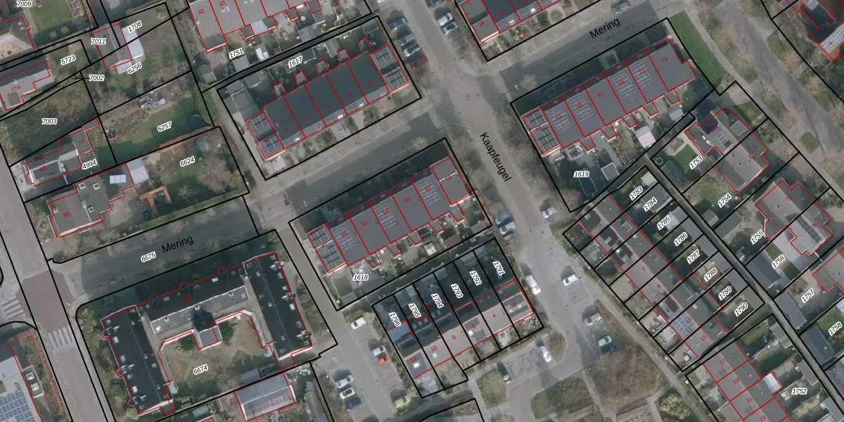 Het perceel waarop Mering 55 staat heeft een oppervlakte van 988 m². Dit is een groot perceel. De perceeloppervlakte wordt geregistreerd door het Kadaster. Gedetailleerde informatie over de maten van dit perceel kunt u vinden in het rapport Kadastrale kaart met maatvoering van Mering 55.