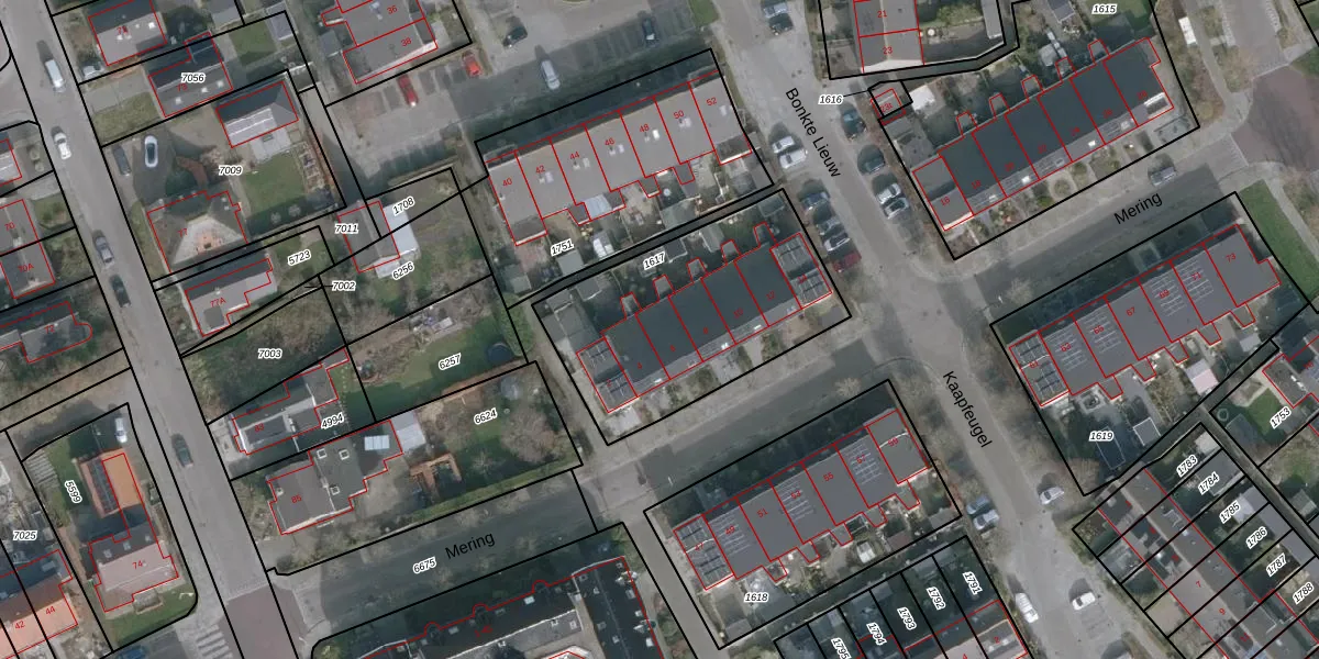 Het perceel waarop Mering 6 staat heeft een oppervlakte van 976 m². Dit is een groot perceel. De perceeloppervlakte wordt geregistreerd door het Kadaster. Gedetailleerde informatie over de maten van dit perceel kunt u vinden in het rapport Kadastrale kaart met maatvoering van Mering 6.