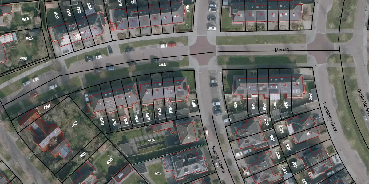 Het perceel waarop Mering 89 staat heeft een oppervlakte van 300 m². Dit is een groot perceel. De perceeloppervlakte wordt geregistreerd door het Kadaster. Gedetailleerde informatie over de maten van dit perceel kunt u vinden in het rapport Kadastrale kaart met maatvoering van Mering 89.