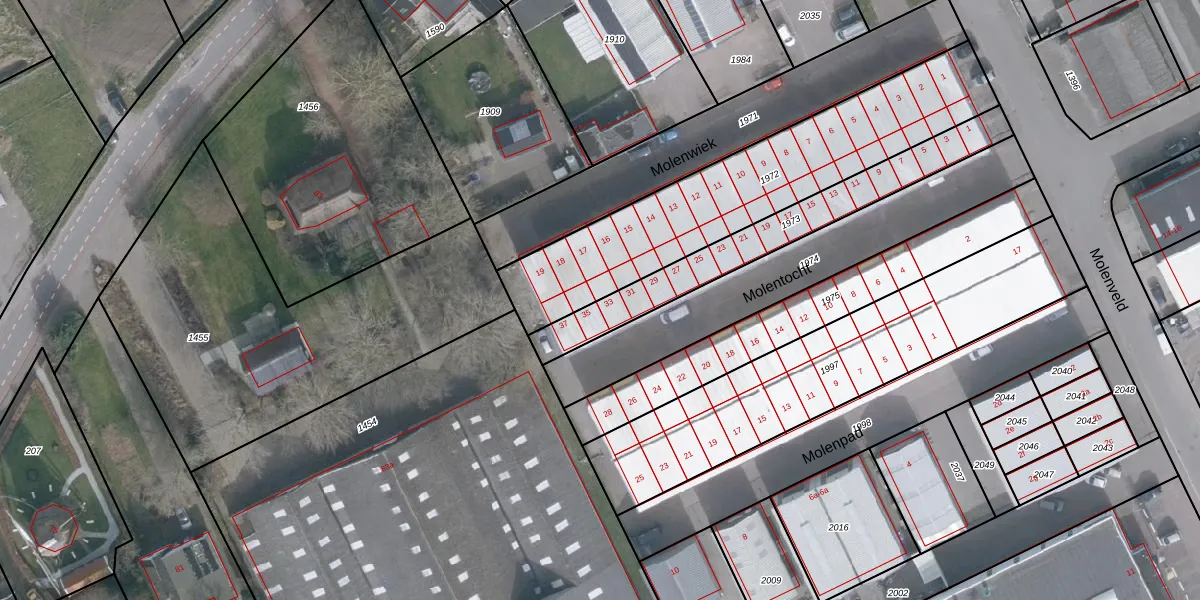 Het perceel waarop Molentocht 33 staat heeft een oppervlakte van 1050 m². Dit is een zeer groot perceel. De perceeloppervlakte wordt geregistreerd door het Kadaster. Gedetailleerde informatie over de maten van dit perceel kunt u vinden in het rapport Kadastrale kaart met maatvoering van Molentocht 33.