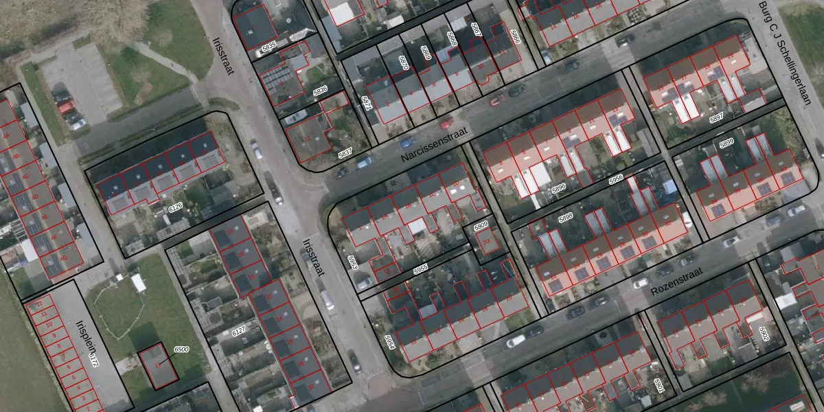 Het perceel waarop Narcissenstraat 1-b staat heeft een oppervlakte van 802 m². Dit is een groot perceel. De perceeloppervlakte wordt geregistreerd door het Kadaster. Gedetailleerde informatie over de maten van dit perceel kunt u vinden in het rapport Kadastrale kaart met maatvoering van Narcissenstraat 1-b.