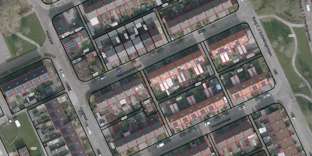 Het perceel waarop Narcissenstraat 3 staat heeft een oppervlakte van 913 m². Dit is een groot perceel. De perceeloppervlakte wordt geregistreerd door het Kadaster. Gedetailleerde informatie over de maten van dit perceel kunt u vinden in het rapport Kadastrale kaart met maatvoering van Narcissenstraat 3.