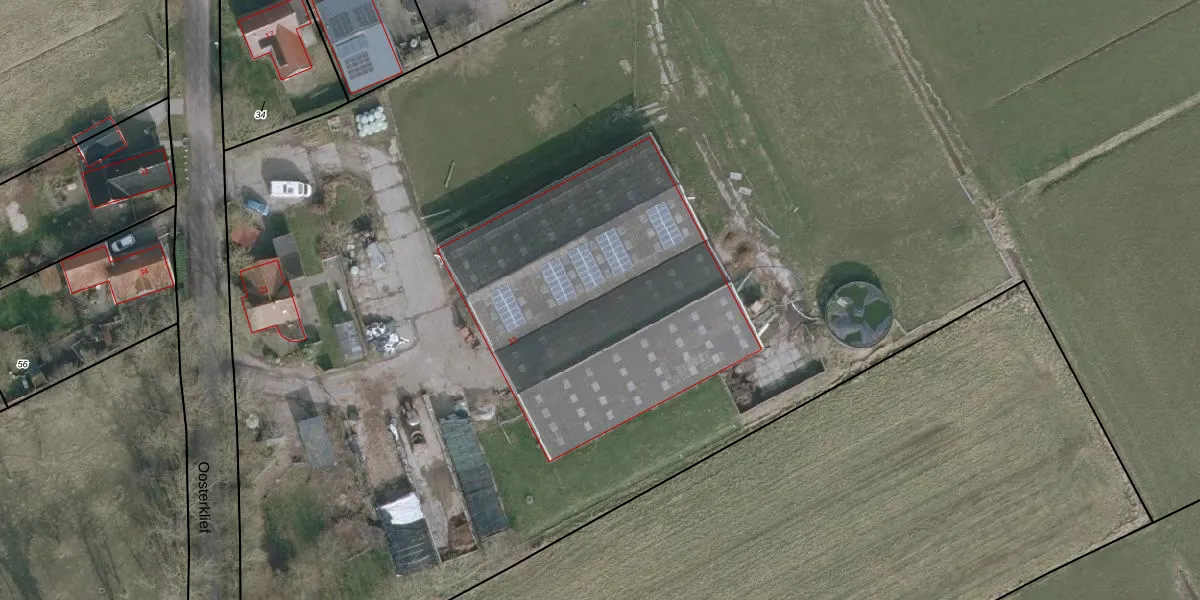 Het perceel waarop Oosterklief 21 staat heeft een oppervlakte van 5,7 ha. Dit is een zeer groot perceel. De perceeloppervlakte wordt geregistreerd door het Kadaster. Gedetailleerde informatie over de maten van dit perceel kunt u vinden in het rapport Kadastrale kaart met maatvoering van Oosterklief 21.