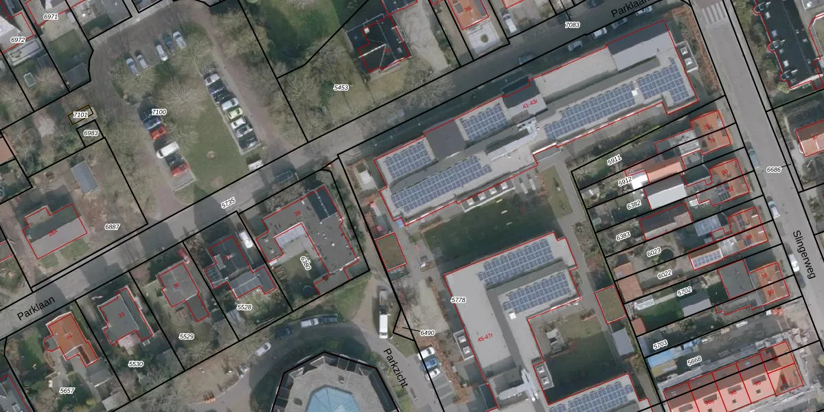 Het perceel waarop Parklaan 41-d staat heeft een oppervlakte van 5722 m². Dit is een zeer groot perceel. De perceeloppervlakte wordt geregistreerd door het Kadaster. Gedetailleerde informatie over de maten van dit perceel kunt u vinden in het rapport Kadastrale kaart met maatvoering van Parklaan 41-d.