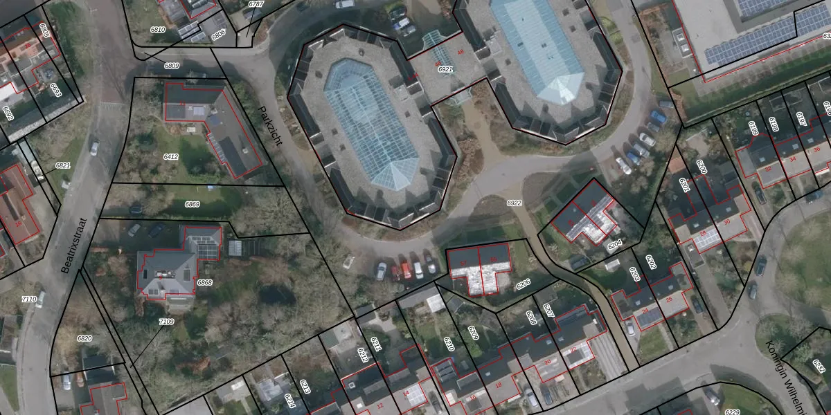 Het perceel waarop Parkzicht 13 staat heeft een oppervlakte van 2805 m². Dit is een zeer groot perceel. De perceeloppervlakte wordt geregistreerd door het Kadaster. Gedetailleerde informatie over de maten van dit perceel kunt u vinden in het rapport Kadastrale kaart met maatvoering van Parkzicht 13.