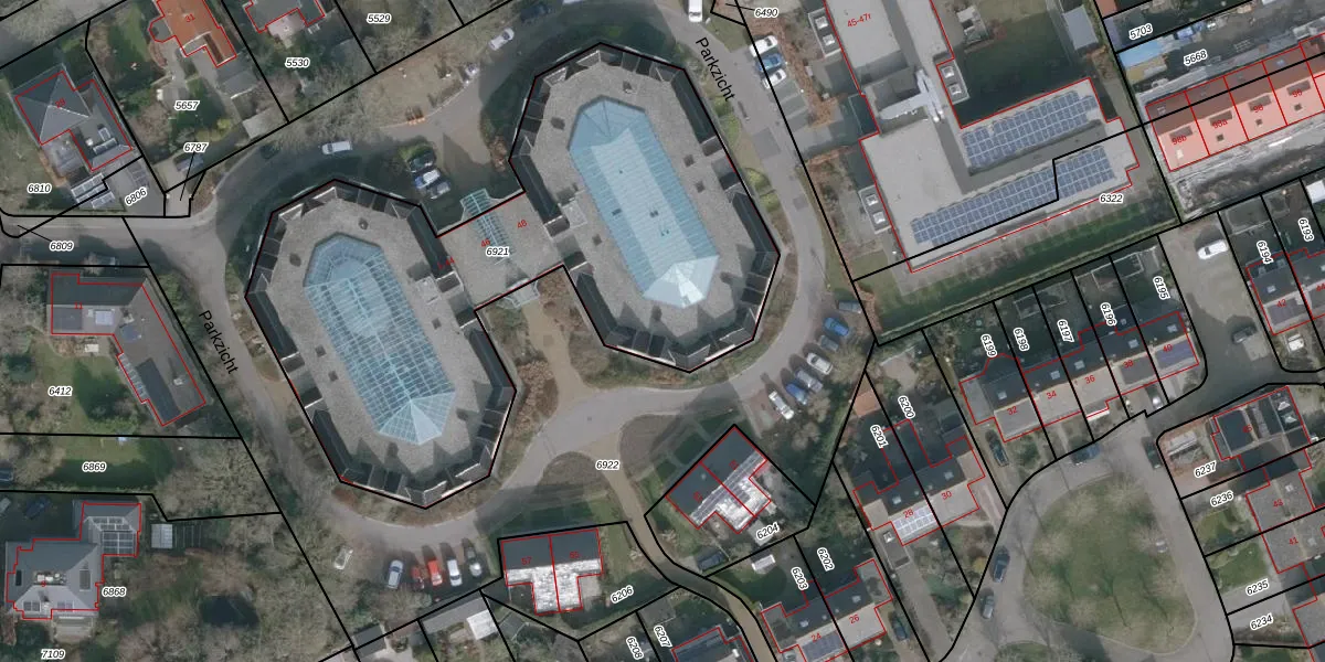 Het perceel waarop Parkzicht 22 staat heeft een oppervlakte van 2805 m². Dit is een zeer groot perceel. De perceeloppervlakte wordt geregistreerd door het Kadaster. Gedetailleerde informatie over de maten van dit perceel kunt u vinden in het rapport Kadastrale kaart met maatvoering van Parkzicht 22.