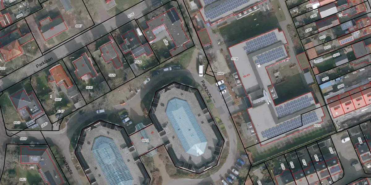 Het perceel waarop Parkzicht 30 staat heeft een oppervlakte van 2805 m². Dit is een zeer groot perceel. De perceeloppervlakte wordt geregistreerd door het Kadaster. Gedetailleerde informatie over de maten van dit perceel kunt u vinden in het rapport Kadastrale kaart met maatvoering van Parkzicht 30.