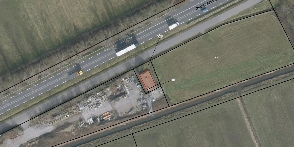 Rijksstraatweg 13 is gelegen op kadastraal perceel WRG01I974. Deze kadastrale aanduiding is uniek en wordt gebruikt door het Kadaster om eigendomsrechten en andere zakelijke rechten vast te leggen. Het perceel maakt onderdeel uit van de kadastrale gemeente Wieringen.