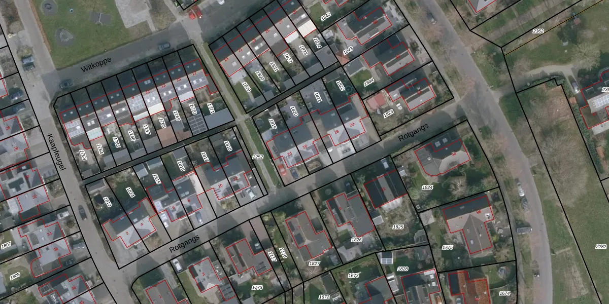 Het perceel waarop Rotgangs 16 staat heeft een oppervlakte van 223 m². Dit is een middelgroot perceel. De perceeloppervlakte wordt geregistreerd door het Kadaster. Gedetailleerde informatie over de maten van dit perceel kunt u vinden in het rapport Kadastrale kaart met maatvoering van Rotgangs 16.