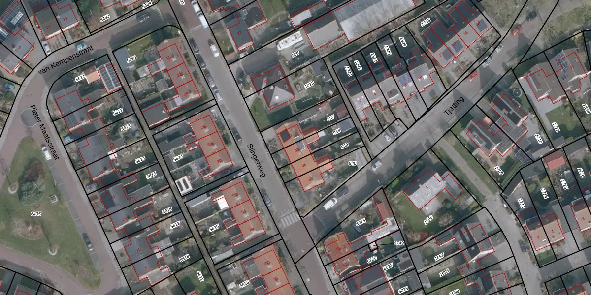 Gebruik de zoekbalk of klik op een perceel voor informatie over de adressen binnen dit perceel.
