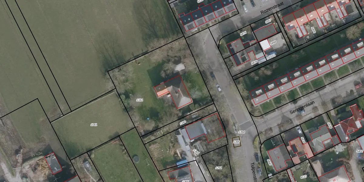 Het perceel waarop Tulpenstraat 2 staat heeft een oppervlakte van 1810 m². Dit is een zeer groot perceel. De perceeloppervlakte wordt geregistreerd door het Kadaster. Gedetailleerde informatie over de maten van dit perceel kunt u vinden in het rapport Kadastrale kaart met maatvoering van Tulpenstraat 2.