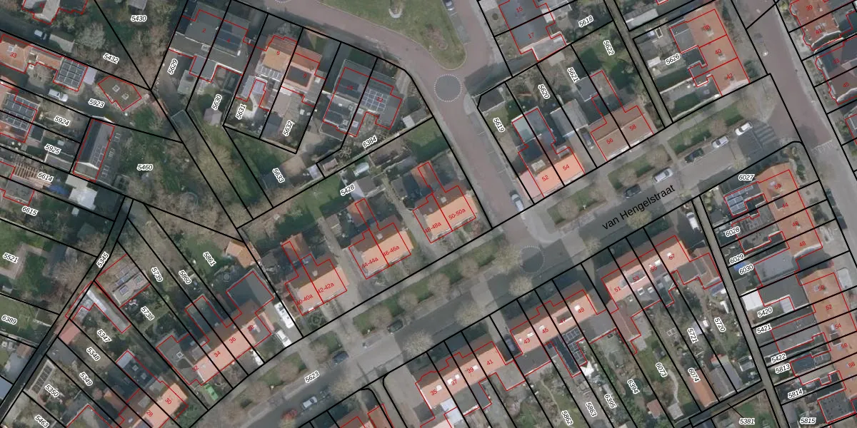 Het perceel waarop van Hengelstraat 48-a staat heeft een oppervlakte van 1560 m². Dit is een zeer groot perceel. De perceeloppervlakte wordt geregistreerd door het Kadaster. Gedetailleerde informatie over de maten van dit perceel kunt u vinden in het rapport Kadastrale kaart met maatvoering van van Hengelstraat 48-a.