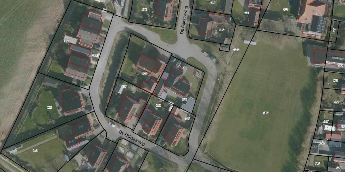 Het perceel waarop Ds Dijkstraweg 8 staat heeft een oppervlakte van 593 m². Dit is een groot perceel. De perceeloppervlakte wordt geregistreerd door het Kadaster. Gedetailleerde informatie over de maten van dit perceel kunt u vinden in het rapport Kadastrale kaart met maatvoering van Ds Dijkstraweg 8.
