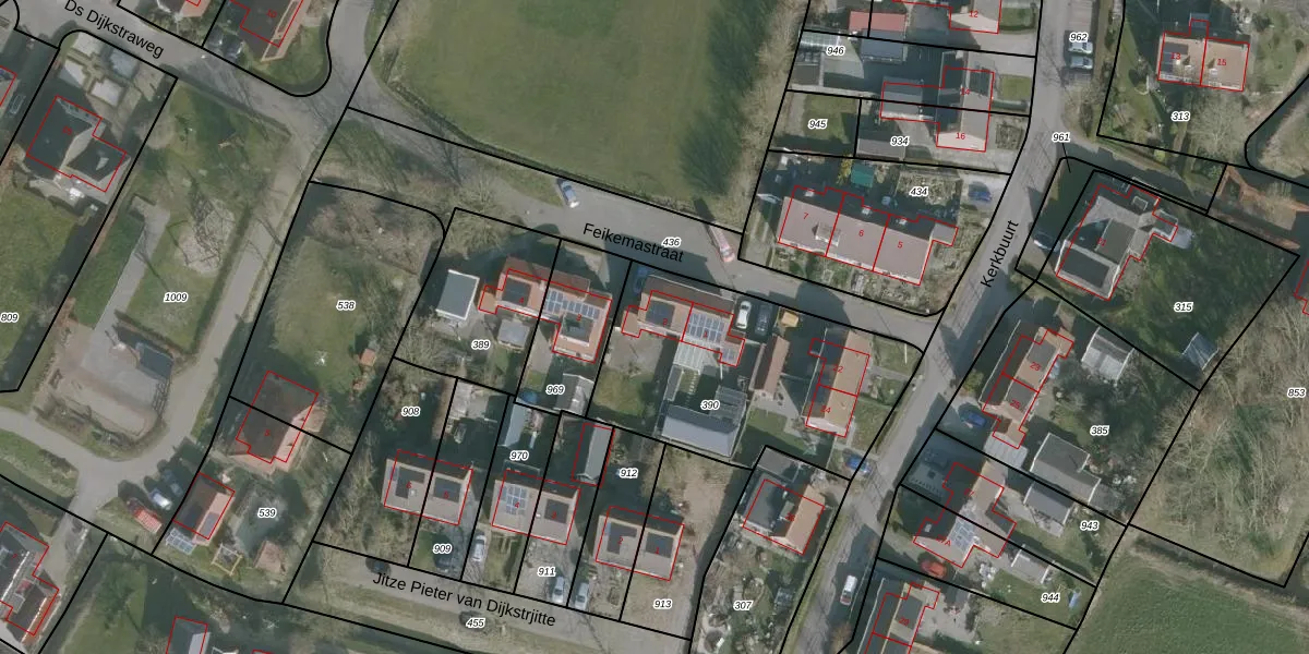 Feikemastraat 2 is gelegen op kadastraal perceel TJU00D390. Deze kadastrale aanduiding is uniek en wordt gebruikt door het Kadaster om eigendomsrechten en andere zakelijke rechten vast te leggen. Het perceel maakt onderdeel uit van de kadastrale gemeente Tjum.