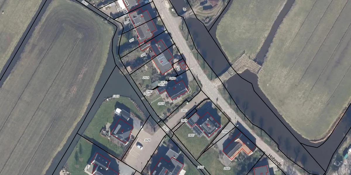 Het perceel waarop Hobrede 35 staat heeft een oppervlakte van 466 m². Dit is een groot perceel. De perceeloppervlakte wordt geregistreerd door het Kadaster. Gedetailleerde informatie over de maten van dit perceel kunt u vinden in het rapport Kadastrale kaart met maatvoering van Hobrede 35.