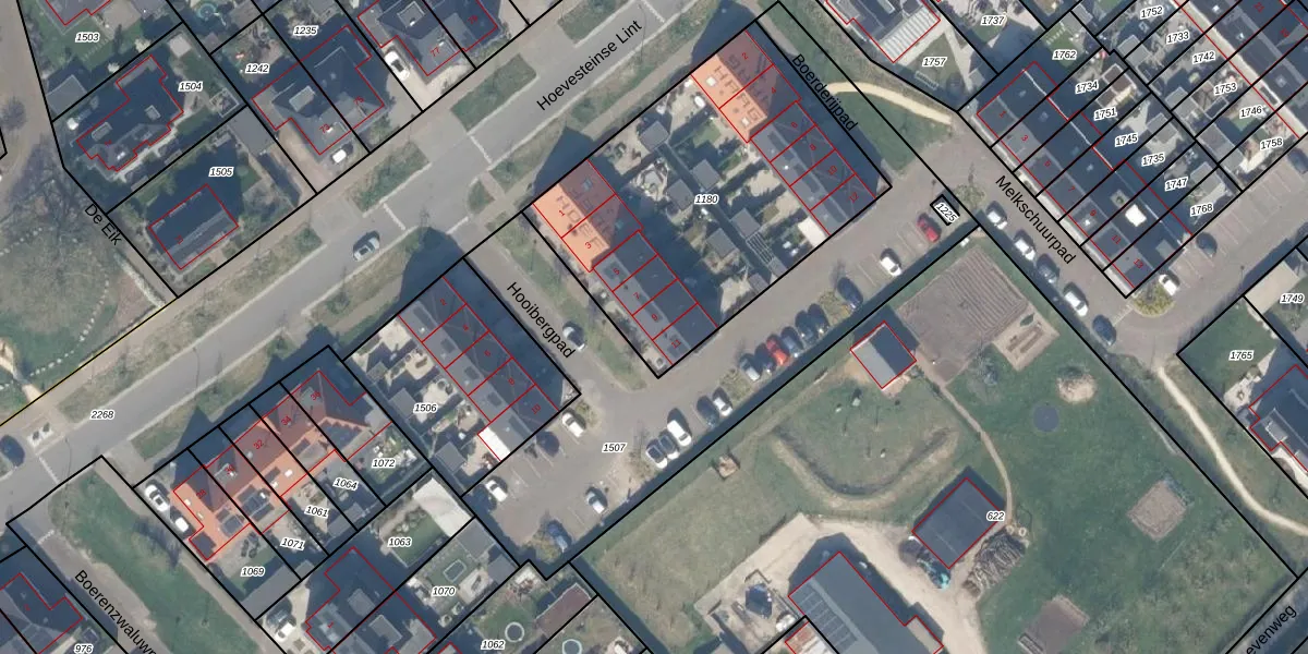 Het perceel waarop Hooibergpad 9 staat heeft een oppervlakte van 1520 m². Dit is een zeer groot perceel. De perceeloppervlakte wordt geregistreerd door het Kadaster. Gedetailleerde informatie over de maten van dit perceel kunt u vinden in het rapport Kadastrale kaart met maatvoering van Hooibergpad 9.
